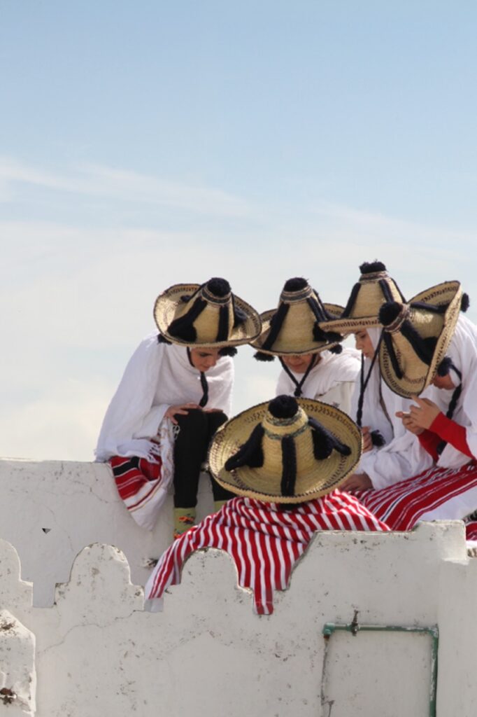 Sans scénario préalable, Bertille Bak s’immerge dans le mode de vie d’un groupe – l’équipage d’un bateau de croisière à Saint-Nazaire, des cireurs de chaussures à La Paz, de jeunes mineurs indiens, indonésiens ou thaïlandais, des demandeuses d’asile résidant à Pau, des artisans dans la médina de Tétouan. Elle évolue à leur contact, observe leurs rites, leurs gestes et leurs objets, avant d’y instiller de nouvelles règles et des artifices en tout genre. Bertille Bak conçoit dès lors avec ces communautés des rituels collectifs qui produisent une image d’elles-mêmes émancipatrice, libérée des clichés véhiculés tant par des documentaires misérabilistes que par un discours activiste basique. Loin de banaliser leurs conditions de vie précaires, Bertille Bak montre ces réalités le plus souvent faussées par l’imaginaire collectif, et donne aux premiers concernés les moyens de raconter par des chemins détournés leur réalité truquée.