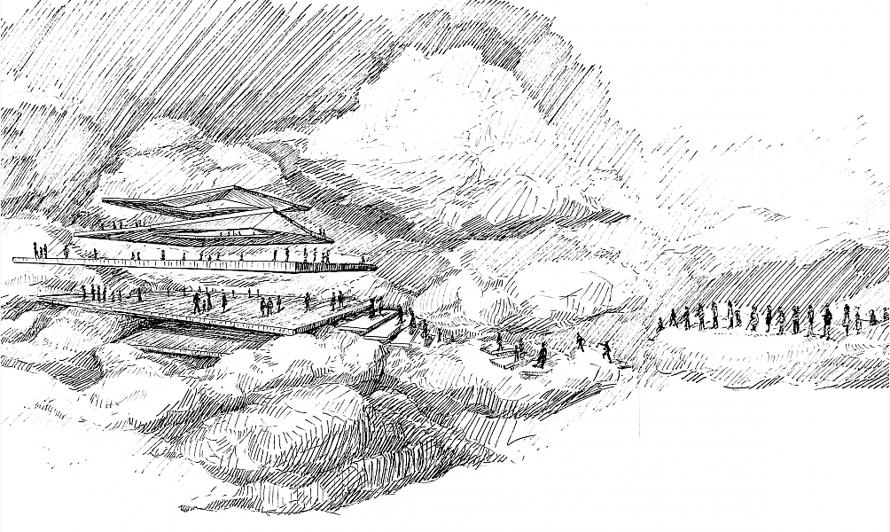 Au sein de cet accrochage, le projet du Musée Sahab (« nuage » en arabe), porté par le collectif Hawaf (fondé par Mohamed Abusal, Sondos Al-Nakhala, Mohamed Bourouissa et Salman Nawati) a pour ambition de rebâtir une communauté à Gaza, partie prenante dans la construction de ce musée par le biais d’ateliers réunissant artistes de toutes les disciplines et habitants. À l’aide des technologies de la réalité virtuelle et la création d’œuvres d’art digitales autour du patrimoine palestinien, le musée sera accessible aux publics de Palestine et du monde. Au cœur de Gaza, à la galerie Eltiqa, quatorze artistes ont été invités par le collectif Hawaf, à participer à l’un des premiers workshops du Musée Sahab : L’Atelier du nuage. De février à avril 2023, une nouvelle génération d’artistes nés entre 1990 et 2000 – Adam Al-Mghari, Ahmed Abunada, Bayan Abu Nahla, Amal Al-Nakhala, Rawan Murad, Sobhi Qouta, Samar Sharaf, Hamada Alkept, Fouad Khater, Hala Alabassi, Hazem Alzomar, Jehad Al-Ghoul, Aboud Nasser, Enas Rayyan – se sont réunis pour réaliser la première œuvre de ce musée-en-devenir.