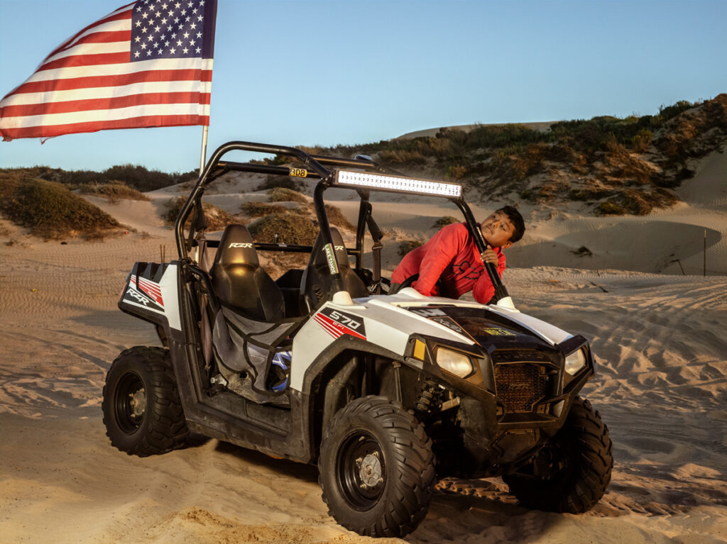 The Oceano Dunes state park area just south of San Luis Obispo in California is known in part for its majestic natural formations and miles of windswept rolling sand. These are the iconic dunes of Edward Weston’s breathtaking photographs; of Cecil B. DeMille’s recently excavated and restored sphinxes from his 1923 Ten Commandments movie set; of the Dunites—the artists, poets, nudists, and mystics squatting in dune shacks in the 1920’s-40’s—and of the nearly lost Northern Chumash tribe who holds a vast and rich cultural history going back 10,000 years. Currently, the Oceano Dunes remain an active and wildly popular recreation site filled with hikers and campers, RV encampments, and members of the local community. Of significant note, 1,000 day passes are issued to off road all terrain vehicles (ATVs) to rip up and down the dunes. Photographer Lana Z Caplan now calls this region home herself, and for seven years she has engaged with tribal leaders, land use and city pollution boards, historians, the ATV and RV communities, and other vested people to learn, photograph, and create a visual conversation about the complexities of this unique part of the country.