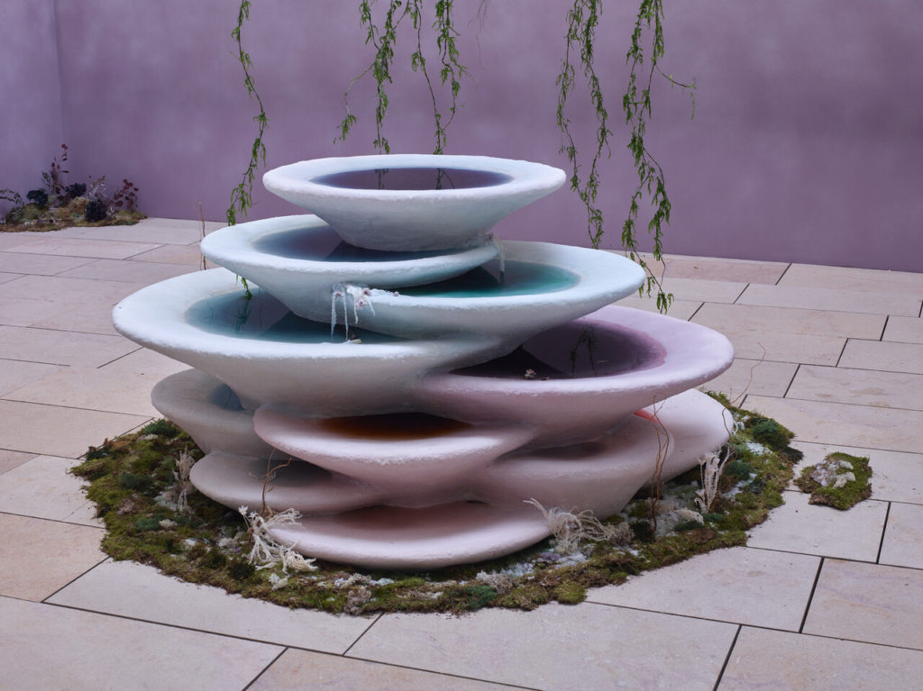 For Open Space #8, her first personal exhibition at a museum in France, Bianca Bondi turns Galerie 8 into a synthetic landscape made up of natural elements. At the centre of the installation lies a well, like a source of energy. Its alveoli contain coloured saline solutions which release a redolent mineral fragrance. Here and there are islands of vegetation and a branch covered with creepers. A purplish haze spreads along the walls. The flowers are stabilised, the salt is crystallised, sound stretches out… Time appears to stand still. Inspired by Mexican cenotes and other sacred springs, this indoor garden invites the spectator to a multi-sensory experience “unreal based in reality,” in the words of the artist herself.